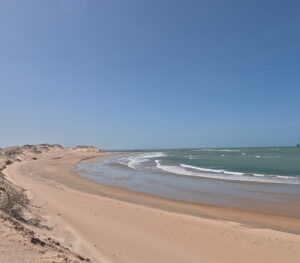 Spot de Wing et Kite se trouvant le long d'une route qui mène vers Guajirù. Juste un bar restaurant, une pousada, et une école de wingfoil, sur ce micro-hameau de passage. Plage immense avec des vagues bien régulières et espacées, conditions magiques selon les marées. Rien à l'horizon, décor un peu désertique malgré la route.